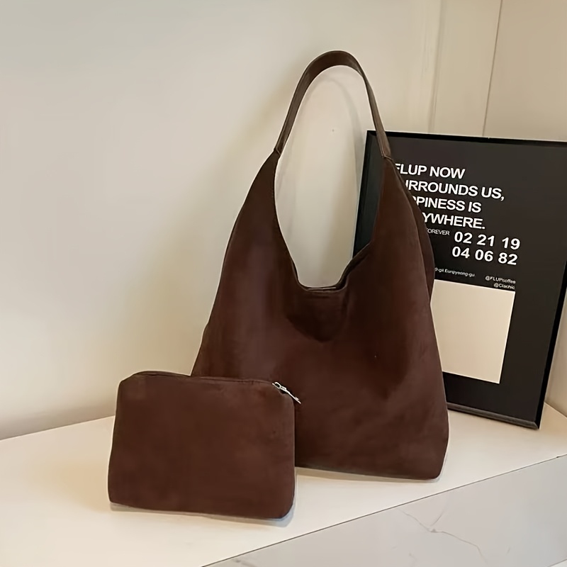 TEMU 대용량 여성 가방, 2026년 가을/겨울 신상 스타일, 통근용 숄더백, 인조 스웨이드 토트 세트!