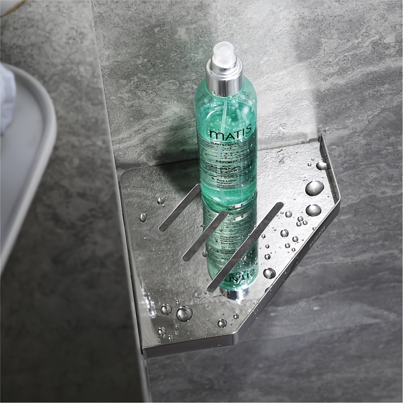 TEMU 1개 스테인리스 벽걸이 욕실 코너 선반 - 쉬운 설치, 화장품 및 세면도구용 공간 절약 정리대, 산업 디자인, 브러쉬, 로션, 튜브용 1단 수납 랙, 욕실 액세서리, 코너 선반