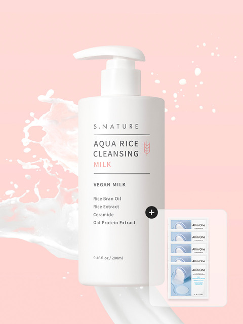 [에스네이처] [촉촉영양보습] 아쿠아 라이스 클렌징밀크 280ml(+카밍패드 10매증정)
