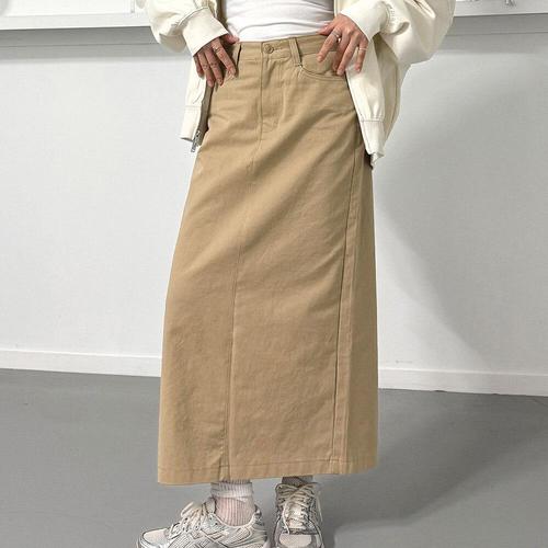 큐니티 여성 단정한 느낌! H라인 롱스커트 뒷트임 코튼 롱치마 면스커트