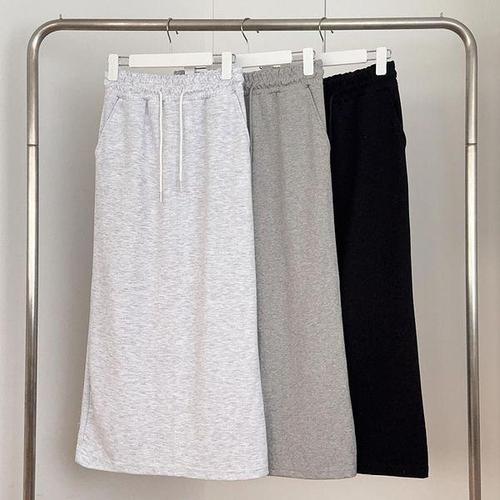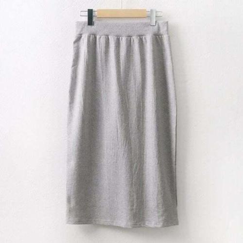 [옷자락]여성 무채색 밴딩 H라인 롱 코튼 스커트 뒤트임 데일리