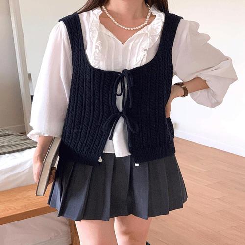 [퍼니걸스]뷔스티에 꽈배기 리본 니트조끼 9197 여성의류