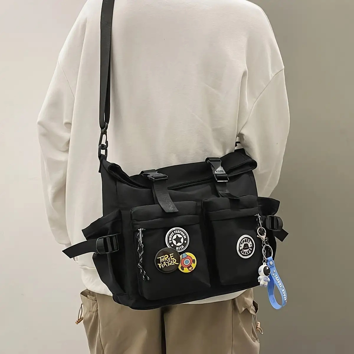 TEMU 싱글 숄더백 남성 크로스바디 소형 백팩 코리안 스타일 캐주얼 대용량 메신저백 고밀도 나일론
