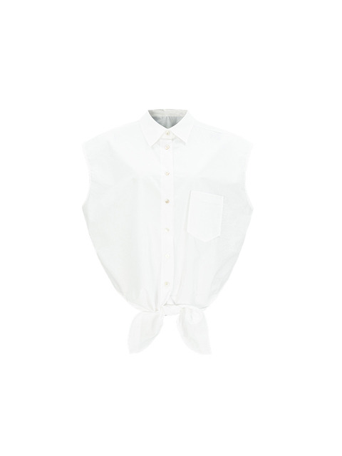 [칼레이트 ] 칼레이트 타이-프론트 코튼 슬리브리스 셔츠 - 화이트