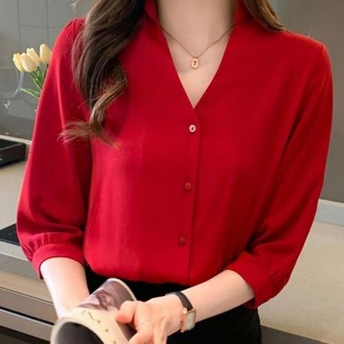 [엄지척]여성 가을 간절기 브이넥 단추 정장 7부소매 블라우스_19649875_667501