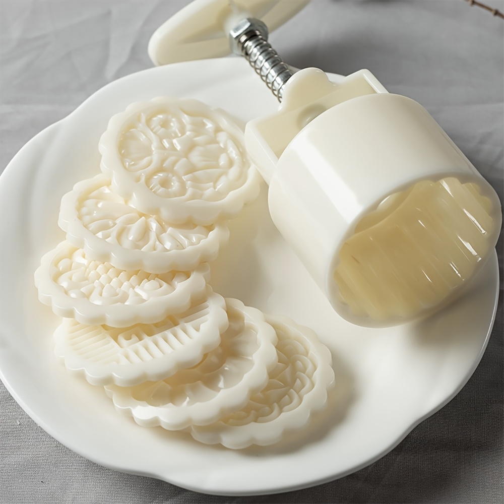 TEMU 6개 꽃 달빵 몰드 세트, 다양한 꽃 모양의 제과 엠보싱 스탬프, DIY 수동 압착 달빵 스탬프, 녹두 케이크, 비스킷, 추석 제과 몰드, 비스킷 도구, 꽃 모양 달빵 메이커, 베이킹 도구