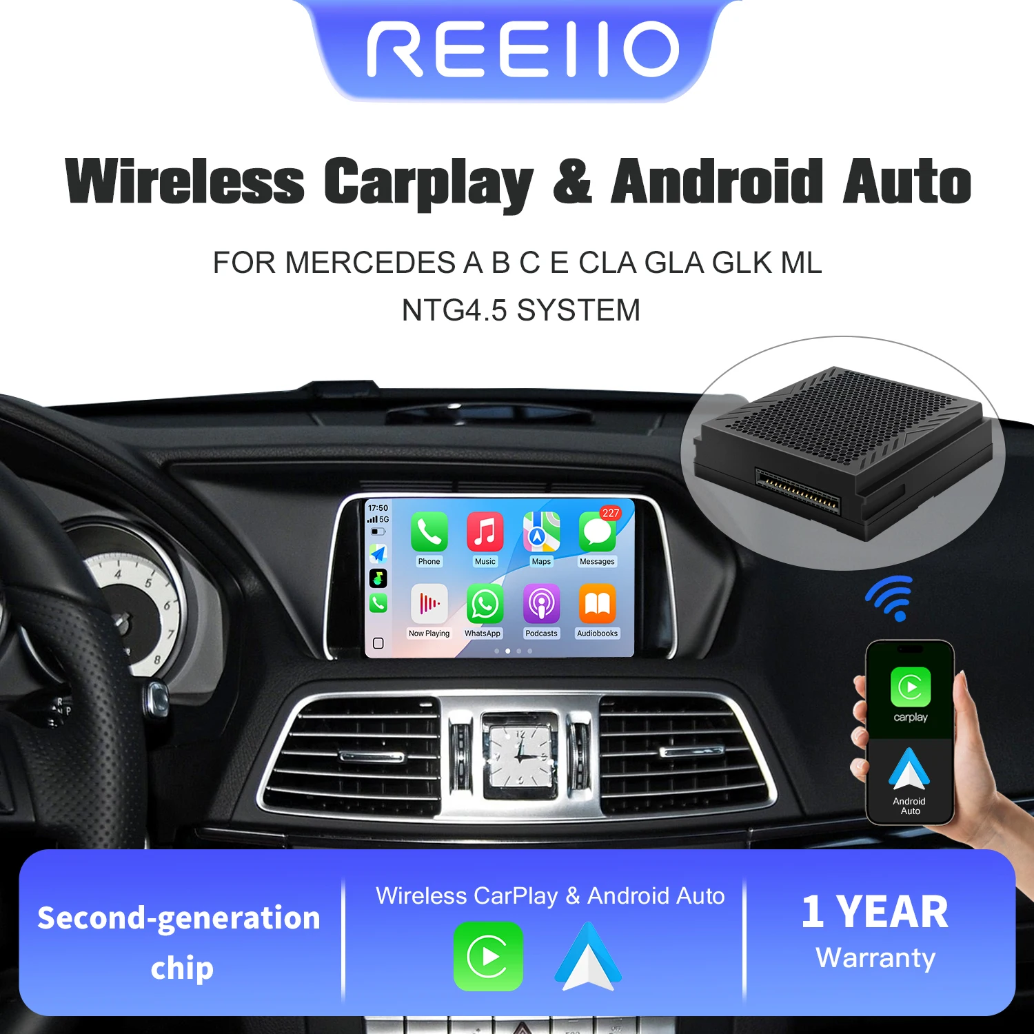 리이오 무선 카플레이 안드로이드 오토 메르세데스 벤츠 A B C E CLA GLA GLK ML 스프린터 NTG4.5 베커 모듈 내비게이션 호환