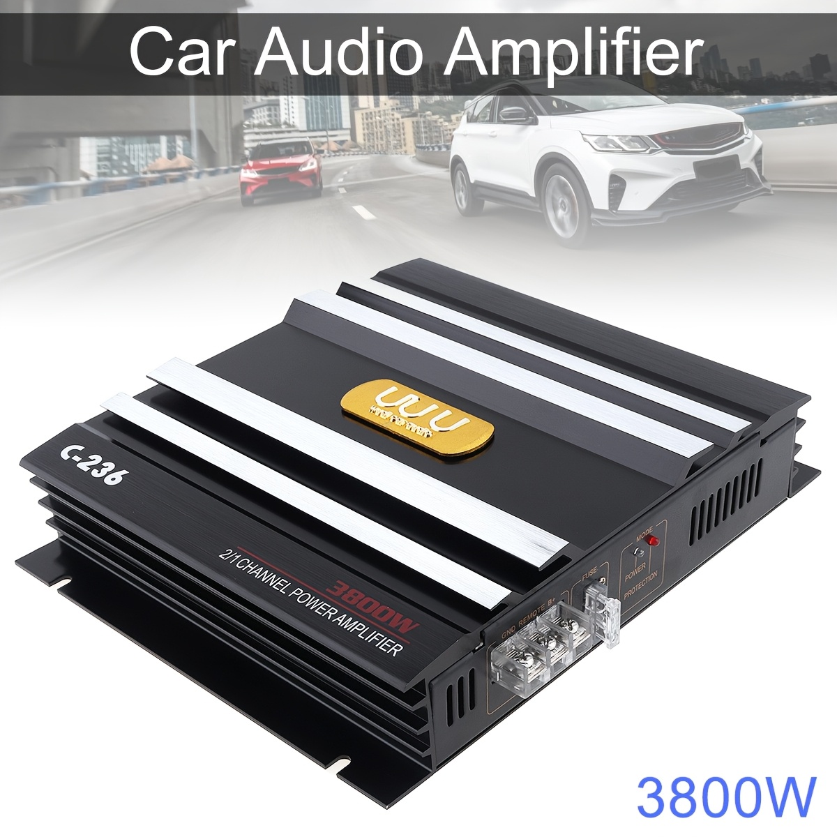 TEMU 3800W 클래스 AB 디지털 2채널 알루미늄 합금 고출력 자동차 스테레오 앰프, 블랙 오디오 파워 앰프
