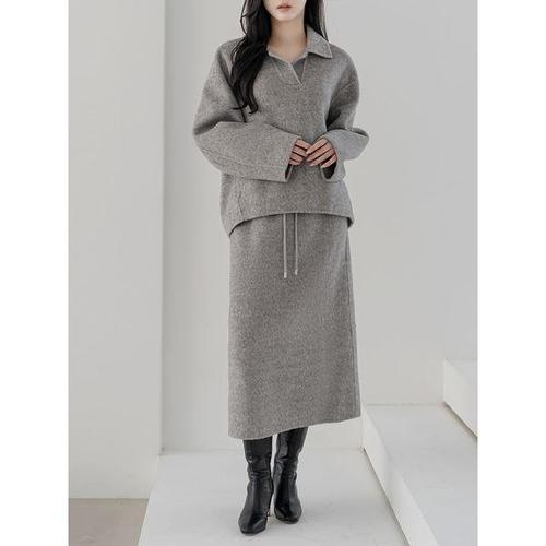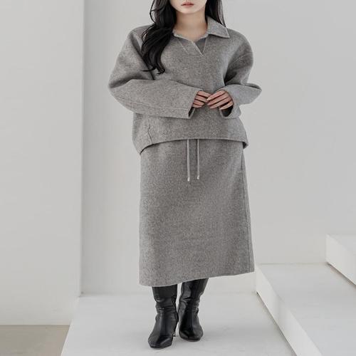 [카라]KARRA 울핸드오픈넥블라우스+스커트SET_A5W0732