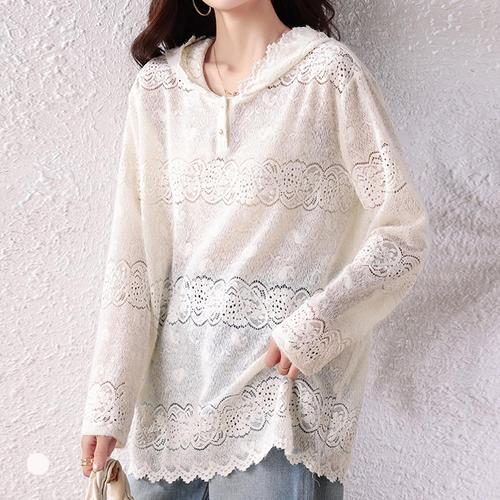 KARRA 페미닌펀칭후드블라우스_A6S0039