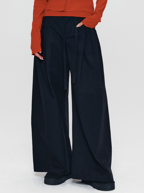 [키르시] 드로우스트링 핀턱 와이드핏 팬츠 [블랙]
