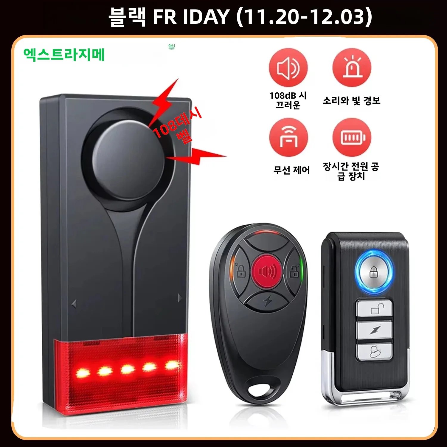 Extractme 108dB 도난 방지 경보 무선 진동 경보기(원격 제어 포함) 도어 및 창문 경보기 자동차 경보 보안 시스템