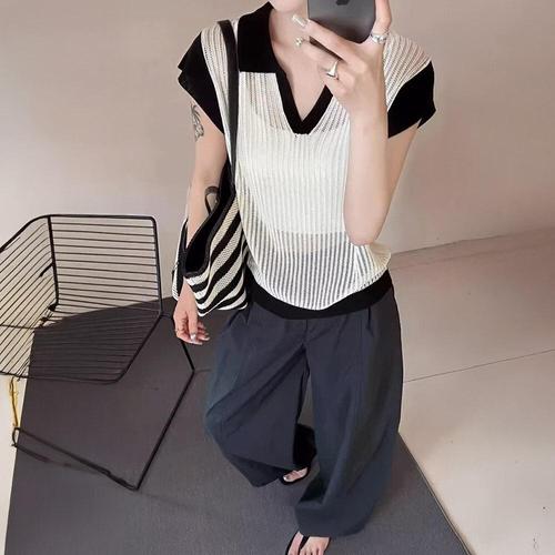 [모어오브]밀란 슬리브 니트 카라 브이넥 스웨터 탑