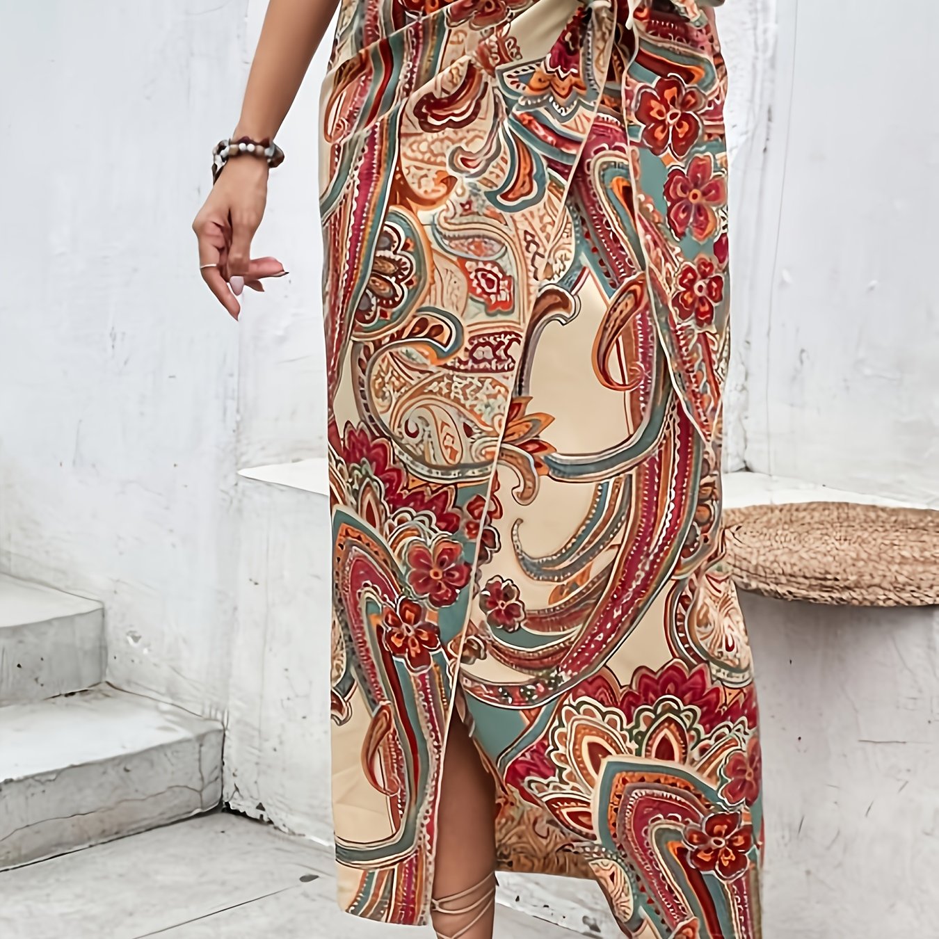 TEMU 우아한 블루 화이트 플로럴 패턴 여성 스커트 | 프린트 디자인, 모든 계절에 적합, 바캉스 스타일