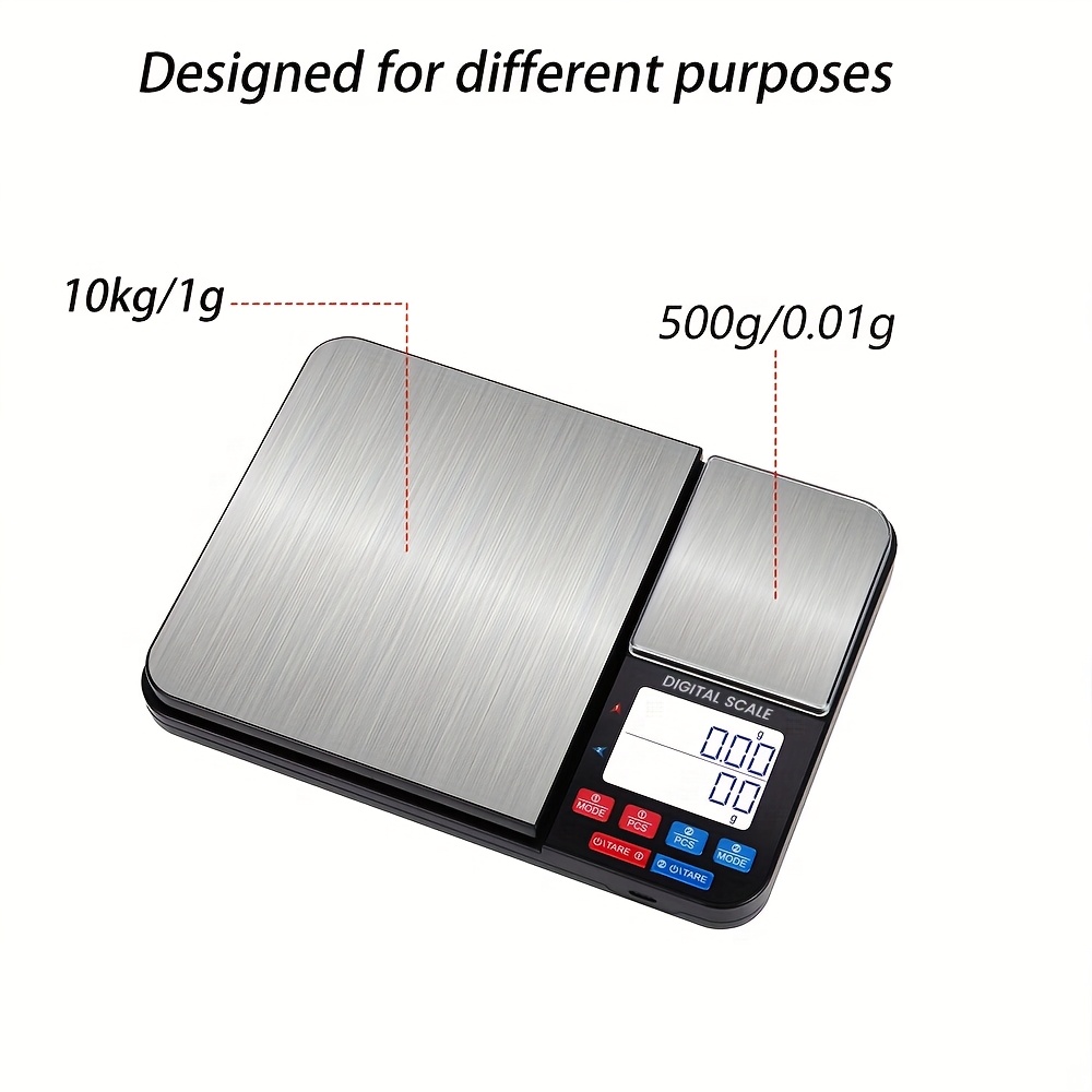 TEMU FODWET 듀얼 팬 주방 저울 10kg/1g | 500g/0.01g 고용량 독립 측정 전자 저울 FCM 식품 접촉 재질 인증 베이킹 및 커피 상업용 저울 가정용 고정밀도 AAA 배터리 3개 필요 (포함되지 않음)