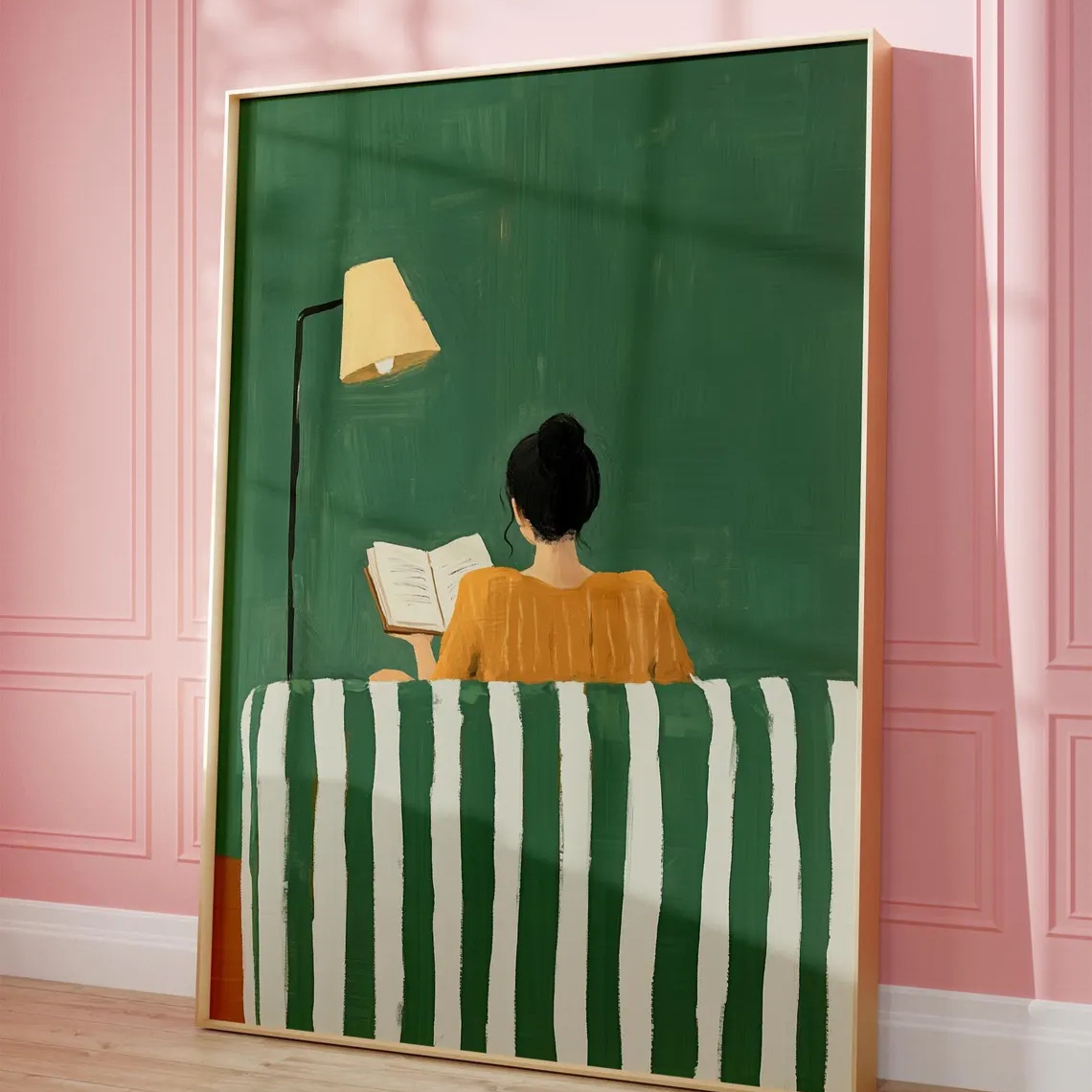 TEMU 1개, 벽 장식, 빈티지 포스터, 여성 독서 아트 프린트, 줄무늬 소파와 추상 인물 캔버스 그림, 침실 인테리어, 거실 미학 디자인, 친구 선물, 집들이 선물, 액자 미포함
