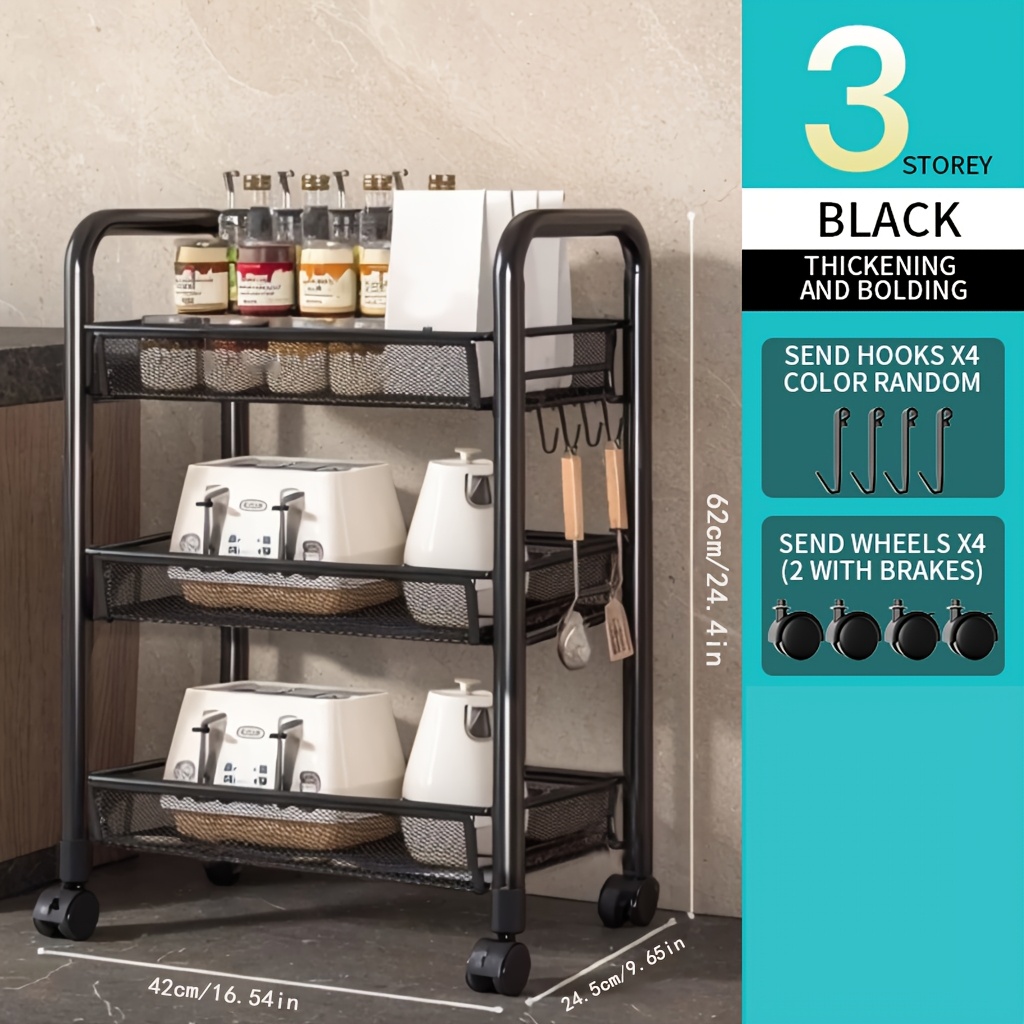 TEMU 1개 블랙 메탈 메쉬 프레임 이동식 카트 - 무드릴 모듈러 디자인, 다층 수납 선반 (욕실/사무실/주방용) - 휴대품·수건·식물 정리함, 공간 절약형 욕실 정리대, 세련된 디자인, 튼튼한 구조, 쉬운 관리, 홈 오거나이저, 선반 바구니 포함