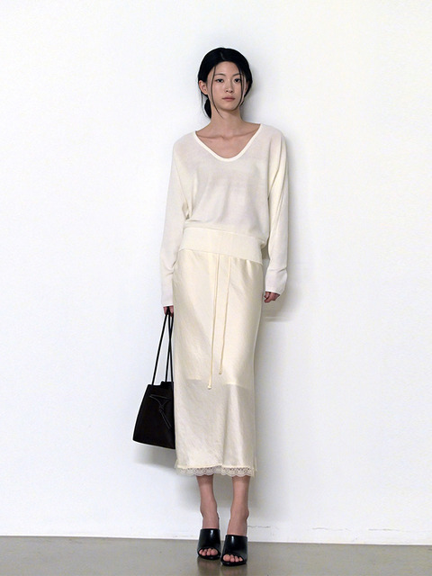 [드팜므] 브이넥 레이어드 니트 아이보리