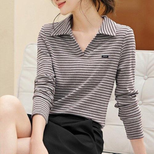 [핑크엘리제]간절기 데일리 스트라이프 카라티 하이센카라티셔츠