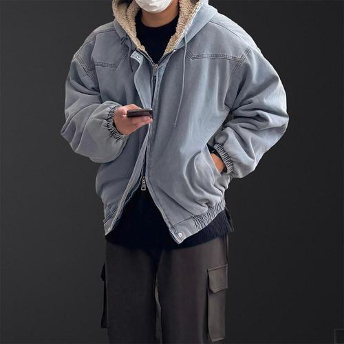 [노멀쉐이크]히터 양털 후드 벌룬핏 크롭 데님 점퍼 (3color)
