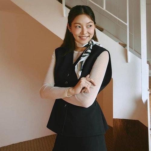 [원더플레이스][더블유스탠다드(W STANDARD)] (SI) 카린 크롭 베스트 티셔츠 세트