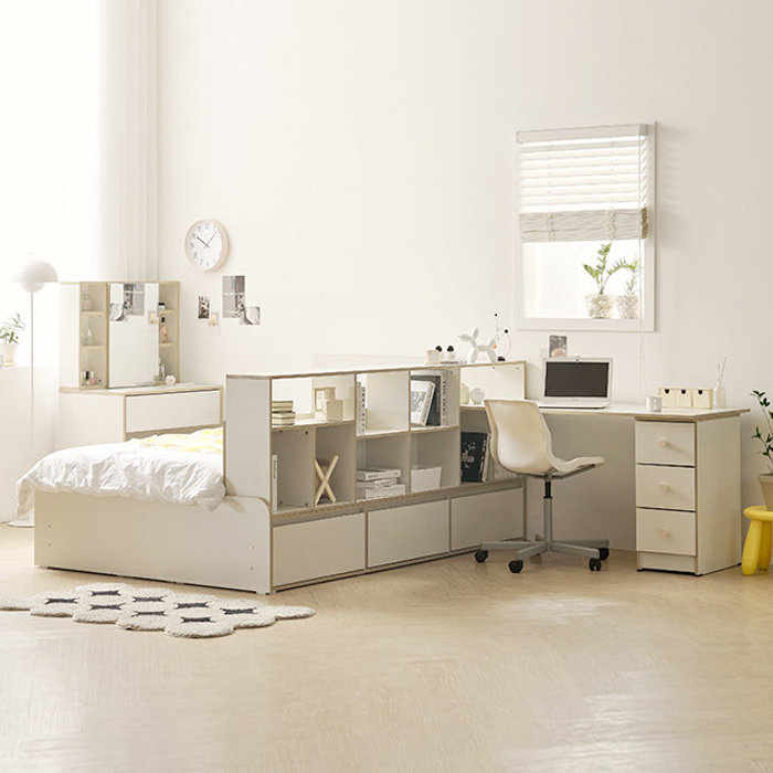 벨리카가구 포니 공간분리 파티션 침대 프레임 책상 세트 1200 SS