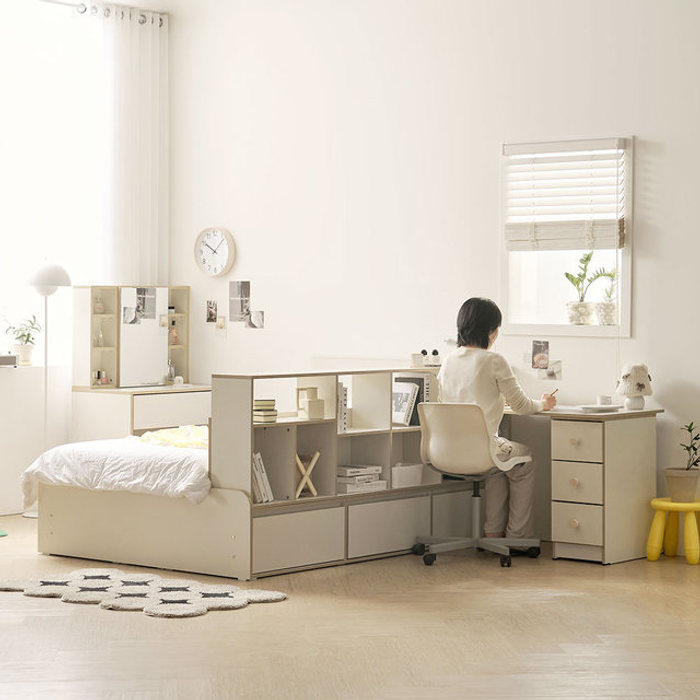 소소숲 체르민 올인원 파티션 슬라이딩 수납침대 SS 1200 책상세트 (B형)