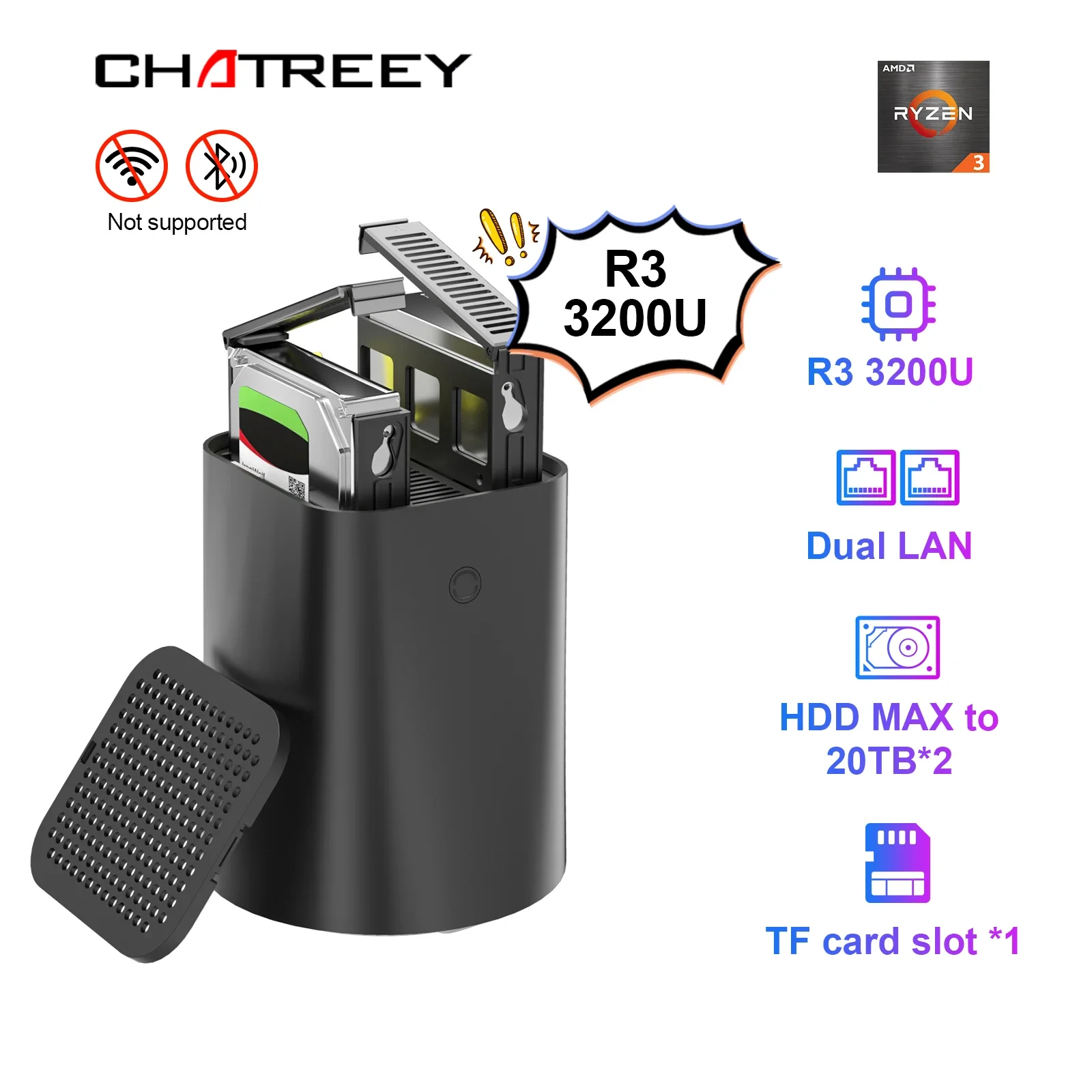 인텔 셀러론 3200U Chatreey NAS 미니 PC SSD 윈도우 11 컴퓨터 듀얼 2.5G LAN 방화벽 서버