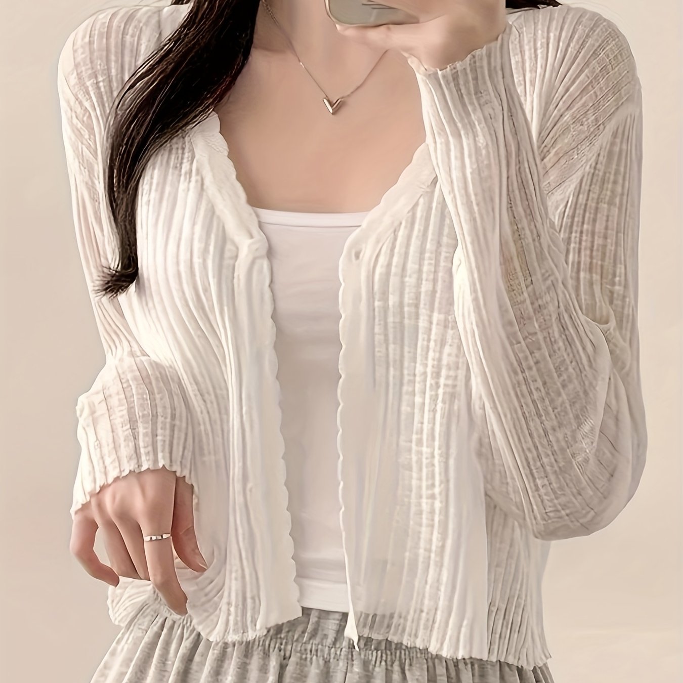 TEMU 여성용 싱글 버튼 V넥, 숏 스타일, 얇은 아우터, 트렌디한 여성 의상 (캠이솔 드레스와 매치) - 한국 스타일 시크한 여름용 경량 아이스 긴팔 가디건