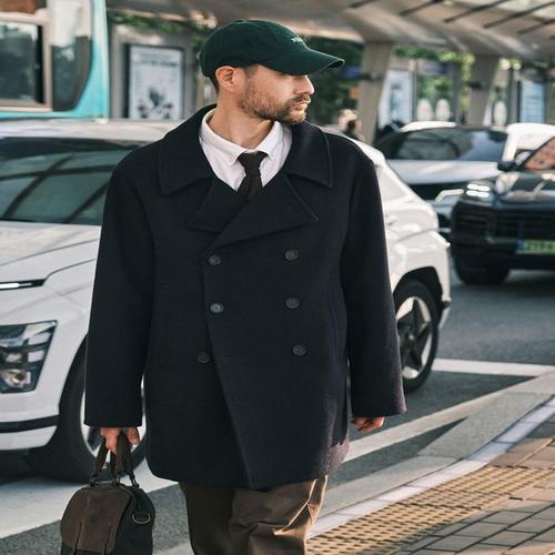 [무료배송 초특가세일] STCO 에스티코 남성겨울코트 핸드메이드 발마칸 하프코트 네이비컬러