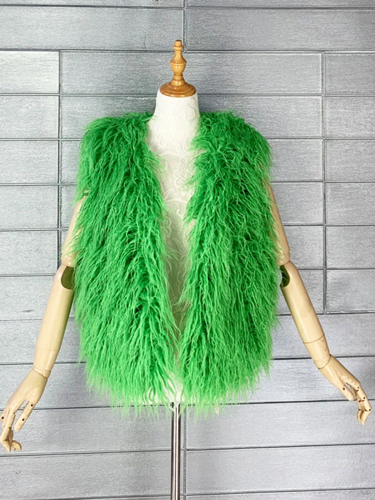 2023 패션 다채로운 몽골 양 모피 재킷, 겨울 가짜 모피 조끼, 따뜻한 민소매 가짜 모피 코트 조끼
