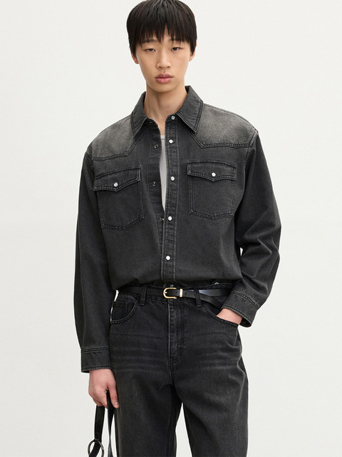[티엔지티] 웨스턴 데님 셔츠 [워시드그레이] TNSH5F106G2