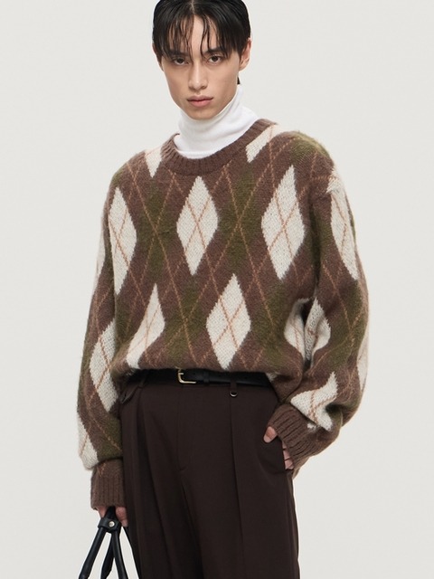[티엔지티] 브라운 오버핏 아가일 브러쉬드 울 니트 (TNSW4F206W2)
