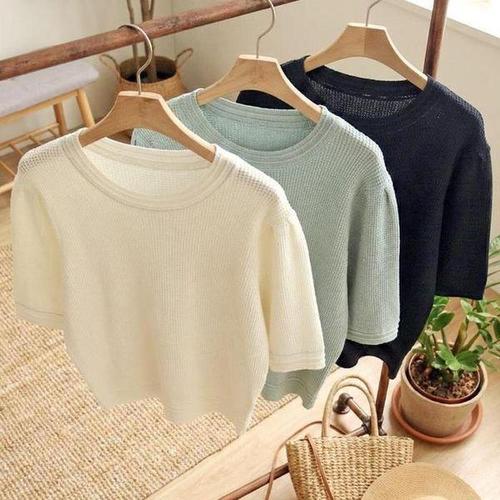 [셀러허브_여성트랜드패션]여자 와플 데일리 반소매 U넥 클래식 티셔츠