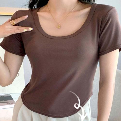 [셀러허브_여성트랜드패션]포즈 반팔티 데일리룩 크롭티 크롭 티숙 U넥 면 여름 라운드 무지 2652 심플 ..