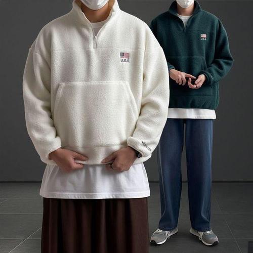 [탑보이]USA 패치 오버핏 반집업 양털 맨투맨 (OC001)