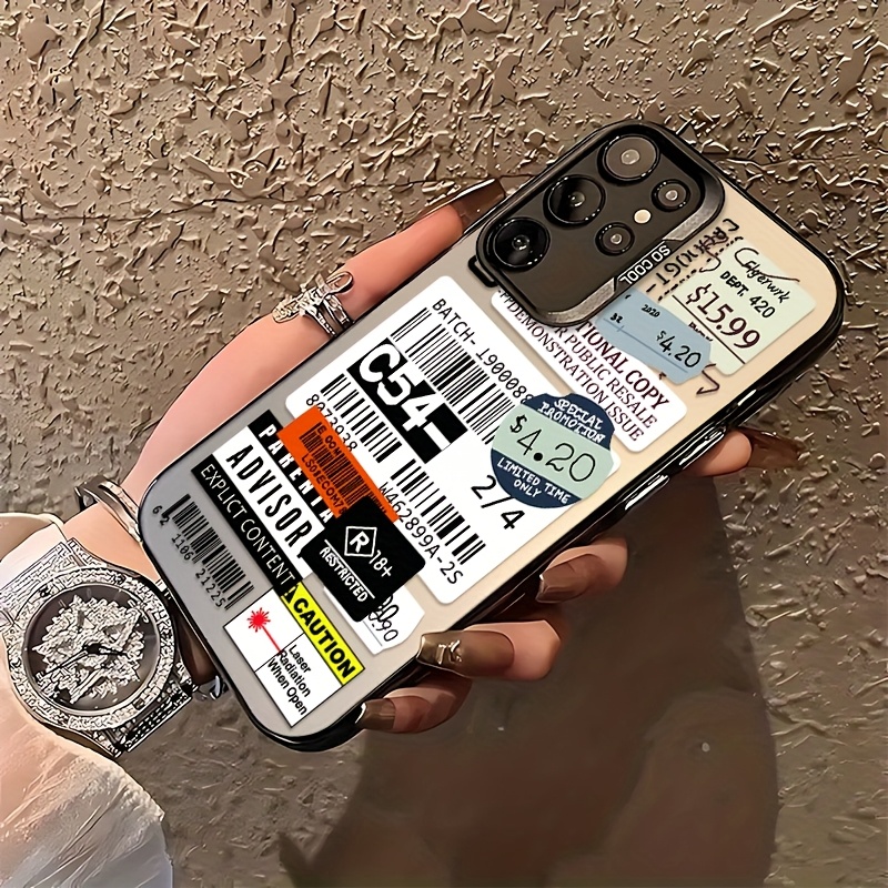 TEMU 삼성 갤럭시 S25 S24 S23 S22 S21 S20 FE 울트라 플러스 4G 5G와 호환되는 패션 라벨 패턴 휴대폰 케이스, 마ット 안티 드롭 백 커버를 특징으로 합니다.