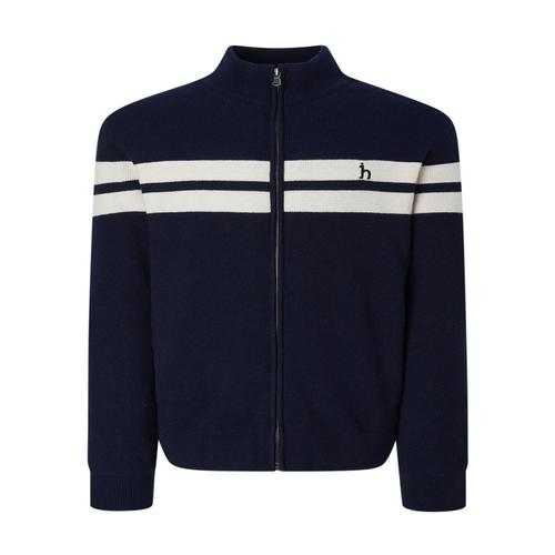 헤지스 남성 [스테디셀러] 네이비 짜임 울혼방 집업니트 (WHSW4D333N3)
