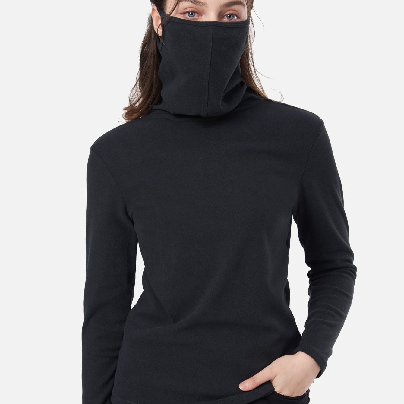 TEMU 여성 멀티웨어 일체형 마스크넥 긴팔 등산 아웃도어 티셔츠 썬쉴드(W6ST13)