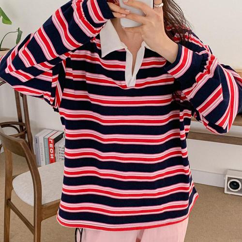 [미라클세븐]스트라이프 면티셔츠 피케티 알록달록 박스 카라티