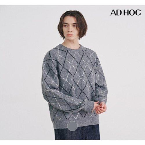 [애드호크]남성 라운드넥 아가일 오버핏 니트(HBALK05)