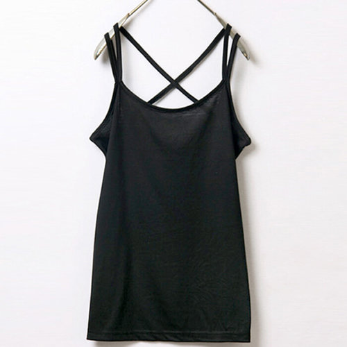 [옷자락]여성 데일리 무지컬러 폴리 백엑스끈 나시티