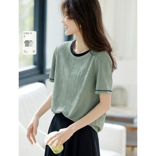제로투올샵2 / 여성용 배색 반팔 티셔츠 그린 XL