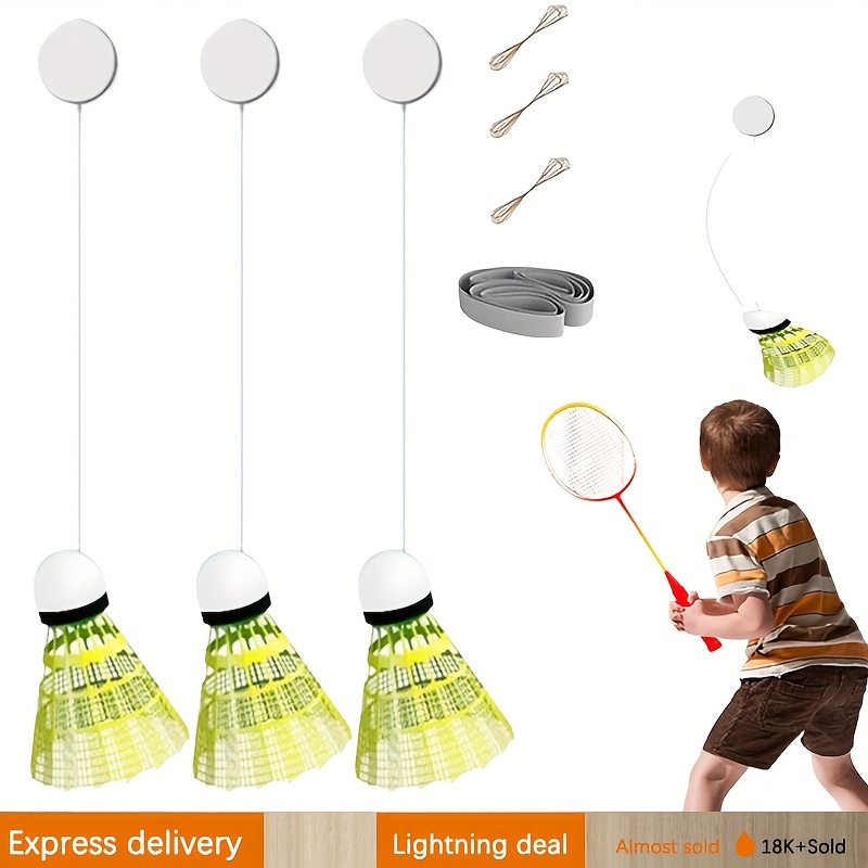 TEMU 실내 사용을 위해 설계된 배드민턴 훈련 도구 3종 세트 (전/후 테이프 및 탄성 밴드 포함), 리바운드 플라이 장착으로 근력 및 피트니스 효과 강화, 파티 및 생일 선물로 적합