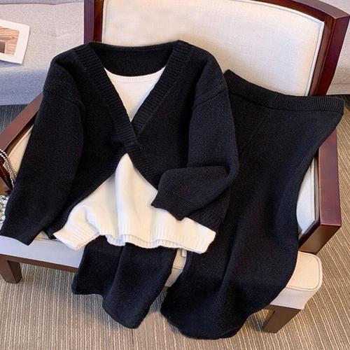 [예쎄](예쎄) [SET]트임 니트 가디건+롱스커트 (S4WSE016A)