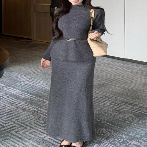 [예쎄](예쎄) [SET]터틀넥 벨트 니트+롱스커트 (S4WSE010A)